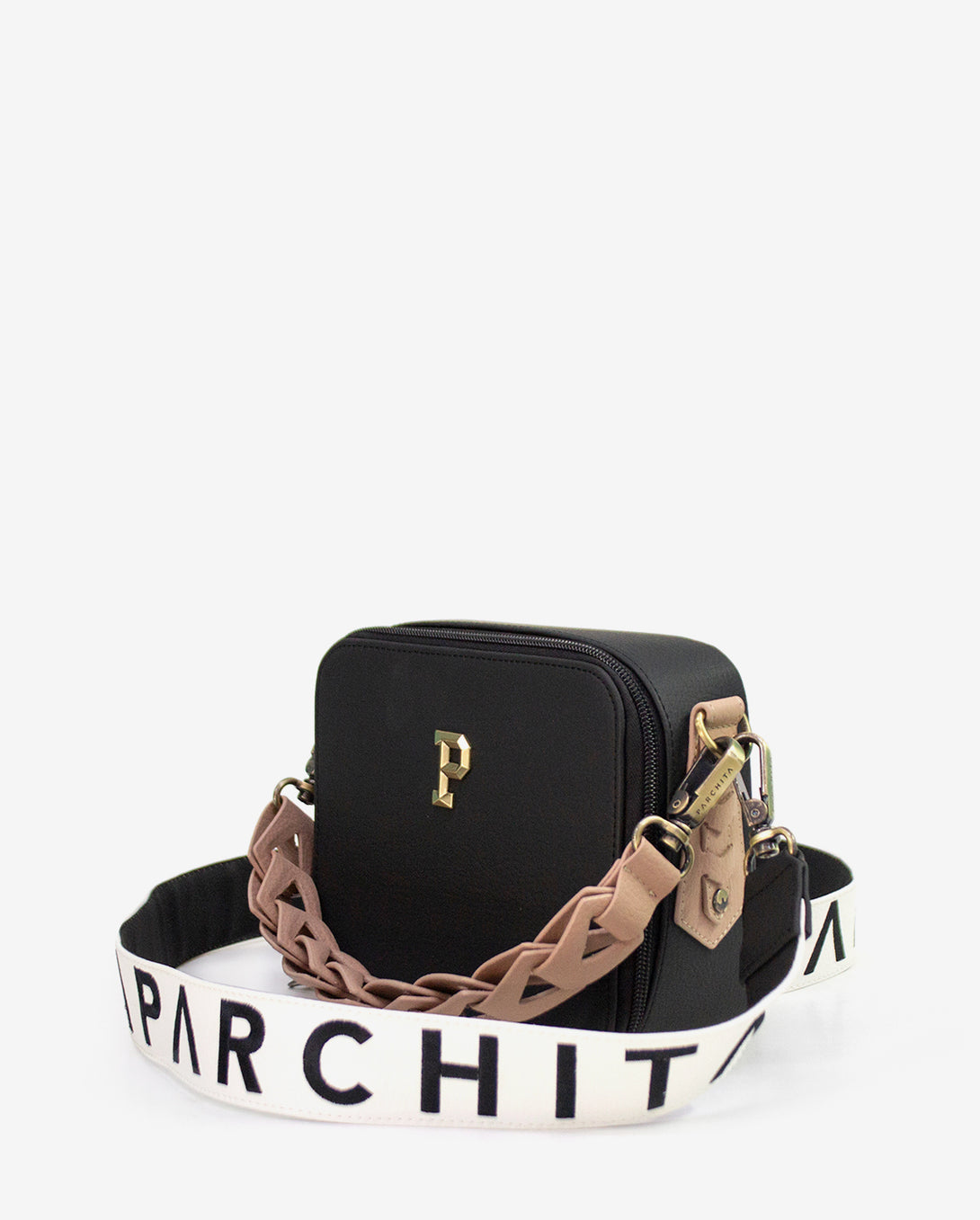 Su diseño estructurado en PVC la convierte en una pieza moderna y duradera, ideal para mujeres que valoran lo práctico sin renunciar al estilo. Cuenta con una asa eslabonada que aporta carácter y una correa ajustable para que la lleves como prefieras. Disponible en una variedad de colores, es el toque final perfecto para elevar cualquier look, de día o de noche.