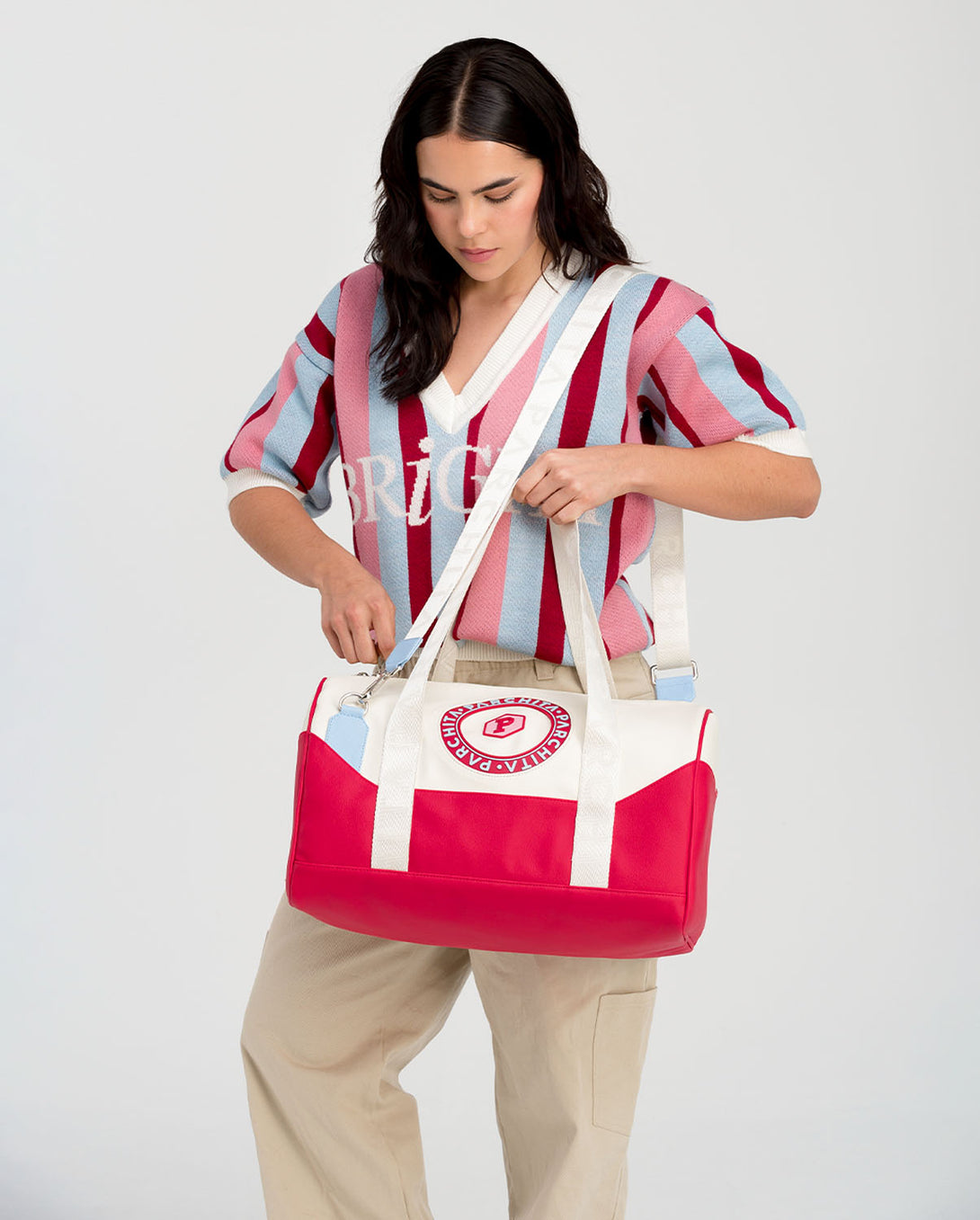 Mini Pop es un bolso grande y espacioso, con cargaderas de nylon y straps ajustables. Bolsillo central grande, bolsillos internos tipo parche y bolsillo pequeño en el posterior, los cuales permiten mantener todas tus pertenencias organizadas. Ideal para llevar tus esenciales de viaje y utilizarlo como bolso de mano, con mucho estilo.